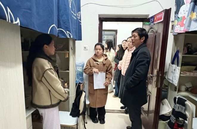 走访过程中,学院领导与老师们亲切询问同学们期末复习备考情况,了解学业压力与需求,鼓励大家合理安排时间、端正心态、积极应考,并提醒同学们互帮互助,共同营造良好的学习氛围。同时,老师们细致查看了宿舍用电安全、环境卫生等,叮嘱同学们务必增强安全意识,严格遵守宿舍管理规定,做到人走断电、不使用违规电器,防范火灾等安全隐患,确保冬季住宿安全。